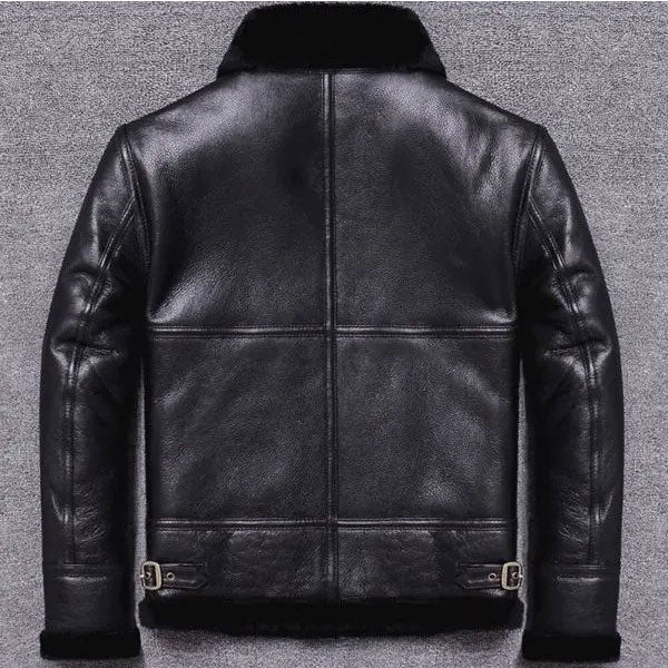 Aviator Jackets, B3 Bomber jackets, Black Leather Jackets, Flying Jackets, Shearling Jackets, Sheepskin JacketsMens Black Military Sheepskin Fur Aviator Leather Jacket