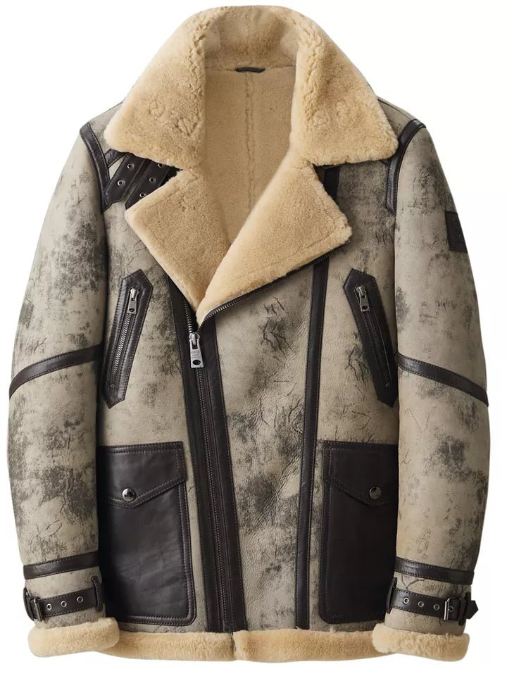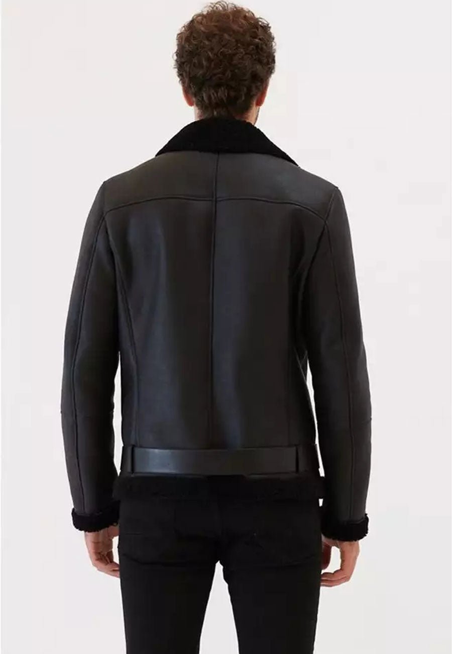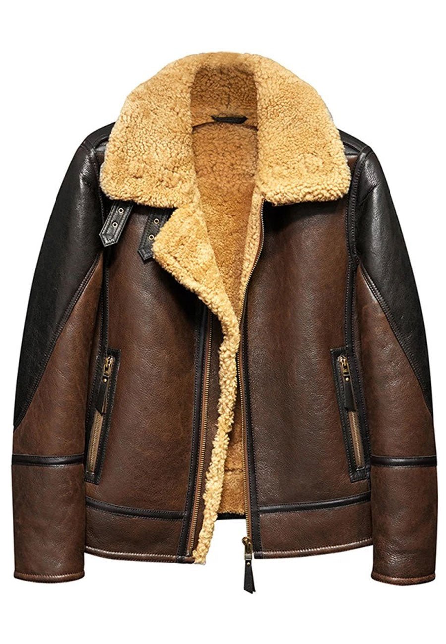 Men’s Aviator B3 Flight Fur Biker Bomber Premium Shearling Coat Jacket 2022