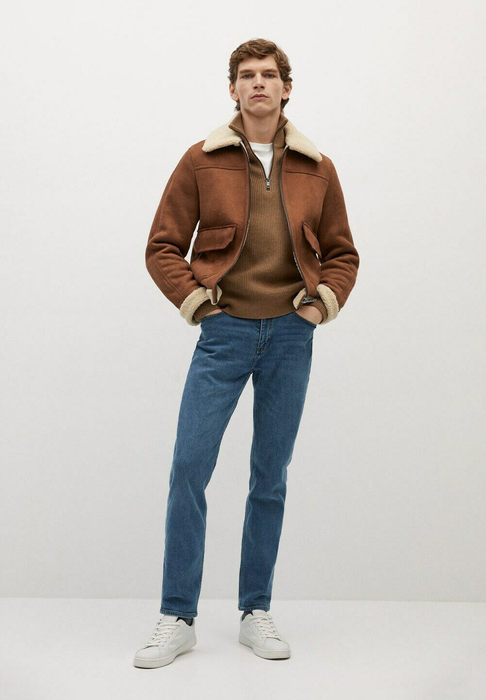 Men's Aviator Tan Brown Leather Shearling Jacket