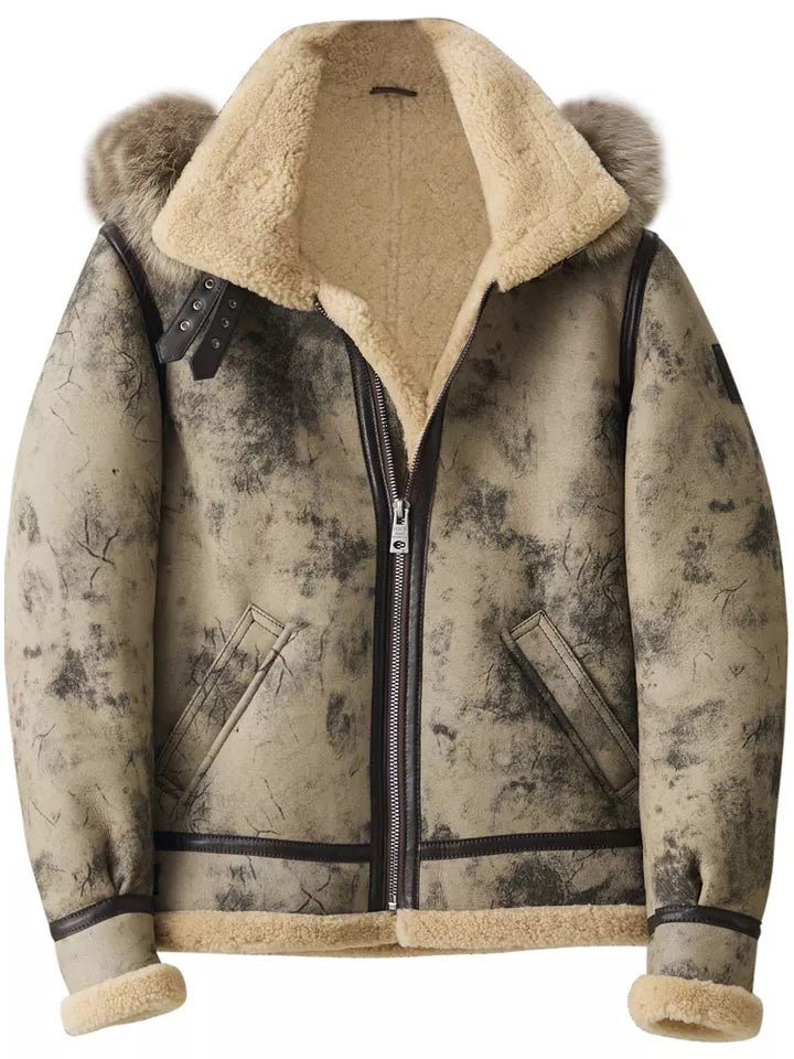 Men’s Aviator B3 Flight Bomber Removable Hood Premium Shearling Jacket 2022