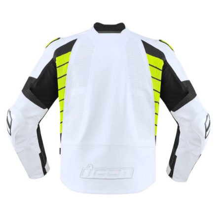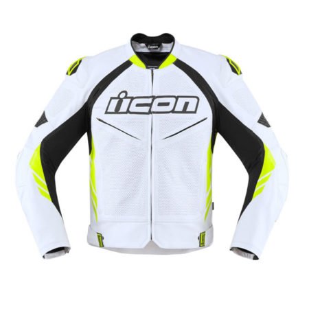 A stylish blend of 1.1-1.3mm TracSpec™ leather and textile, coupled with ICON’s Attack Fit, create a Prime Quality White Icon Motorcycle Leather Jacket built for velocity. A full D3O® impact protector package (elbow, shoulder, back) and the accordion leather flex zones allow for a jacket that contours to your body straight off the rack.