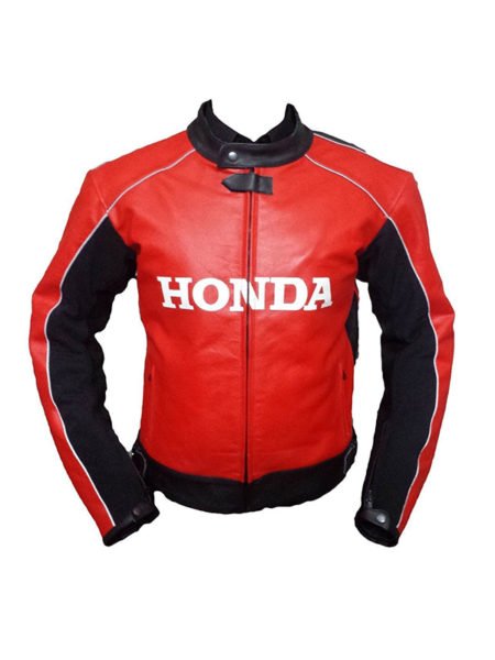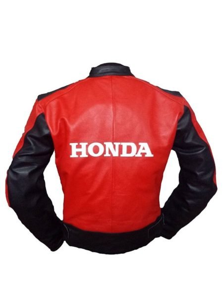Red Honda Racing Motorbike Leather Jacket. These paddings are designed to absorb shock and prevent vulnerable parts of the body from getting injured.