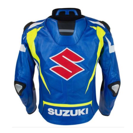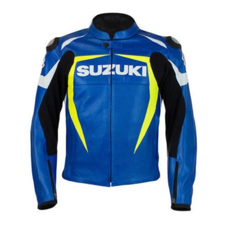 Suzuki Blue-Yellow Motorcycle Armoured Cowhide Leather Motorbike Jacket