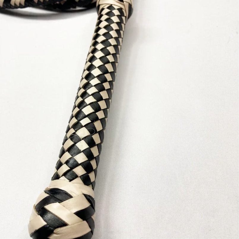 Affordable Cowhide Leather Bullwhip: Crafted from premium black and cream color leather with a cowhide core, offering high quality at a budget-friendly price.