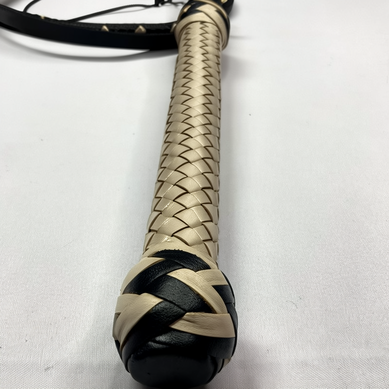 Affordable Cowhide Leather Bullwhip: Crafted from premium black and Cream color leather with a cowhide core, offering high quality at a budget-friendly price.