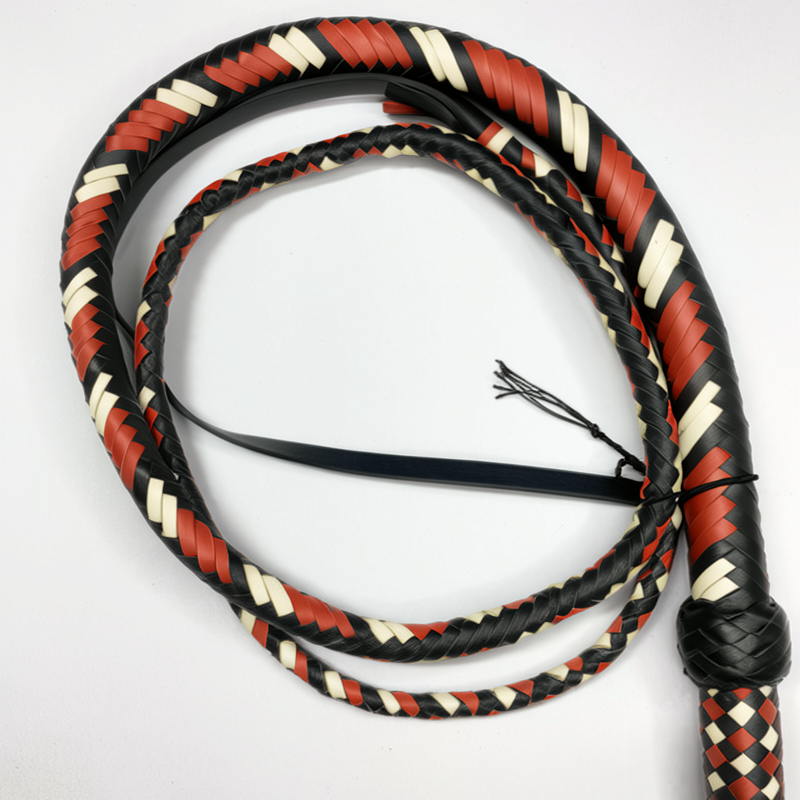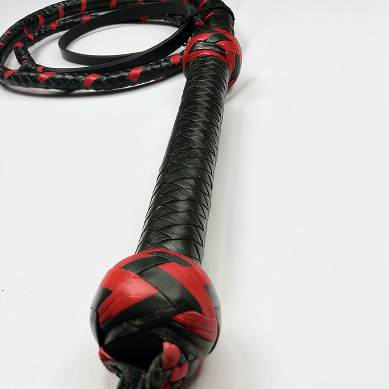 Affordable Cowhide Leather Bullwhip: Crafted from premium black and red color leather with a cowhide core, offering high quality at a budget-friendly price.