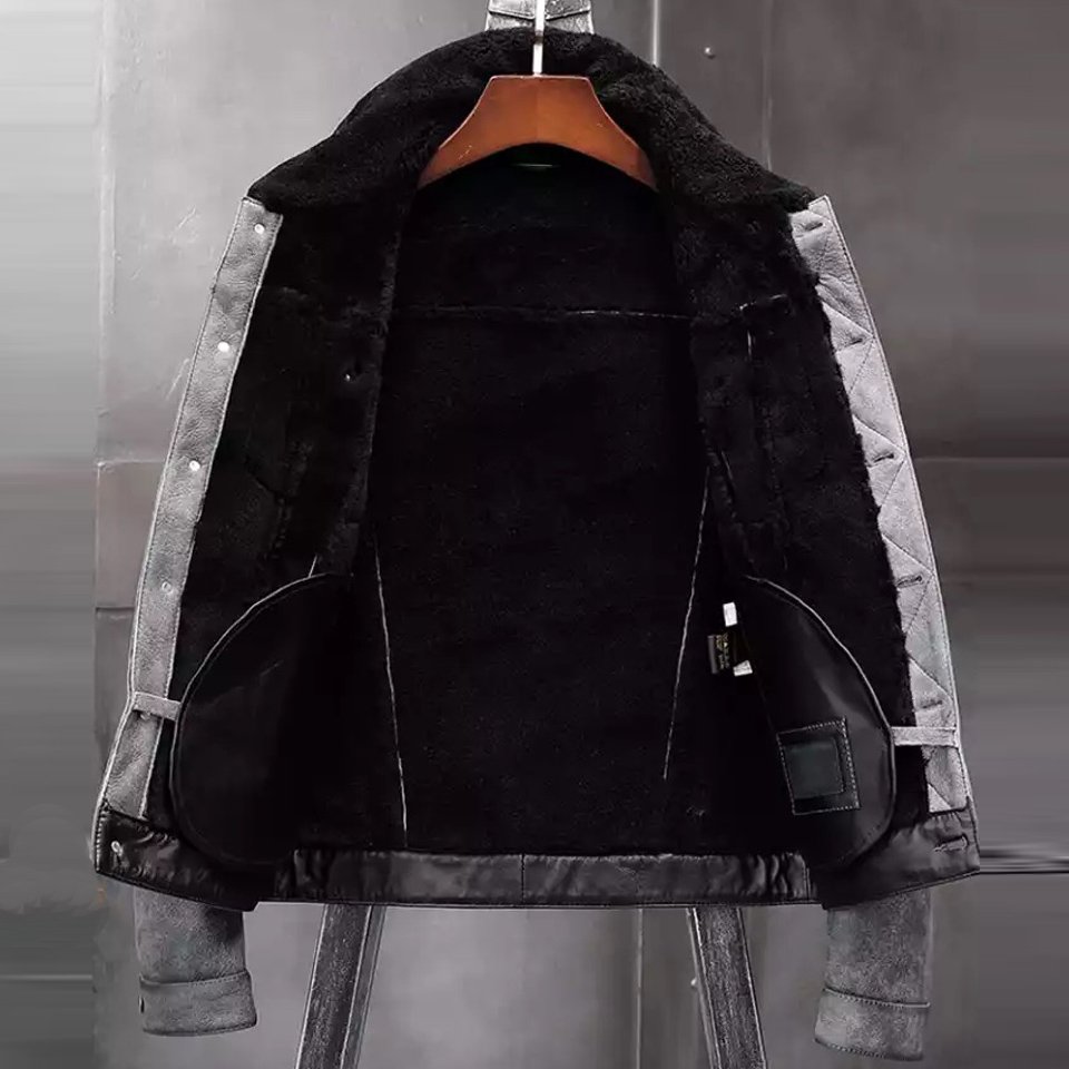 Mens Leather Jacket Fur Coat Airforce B3 Flight Jacket