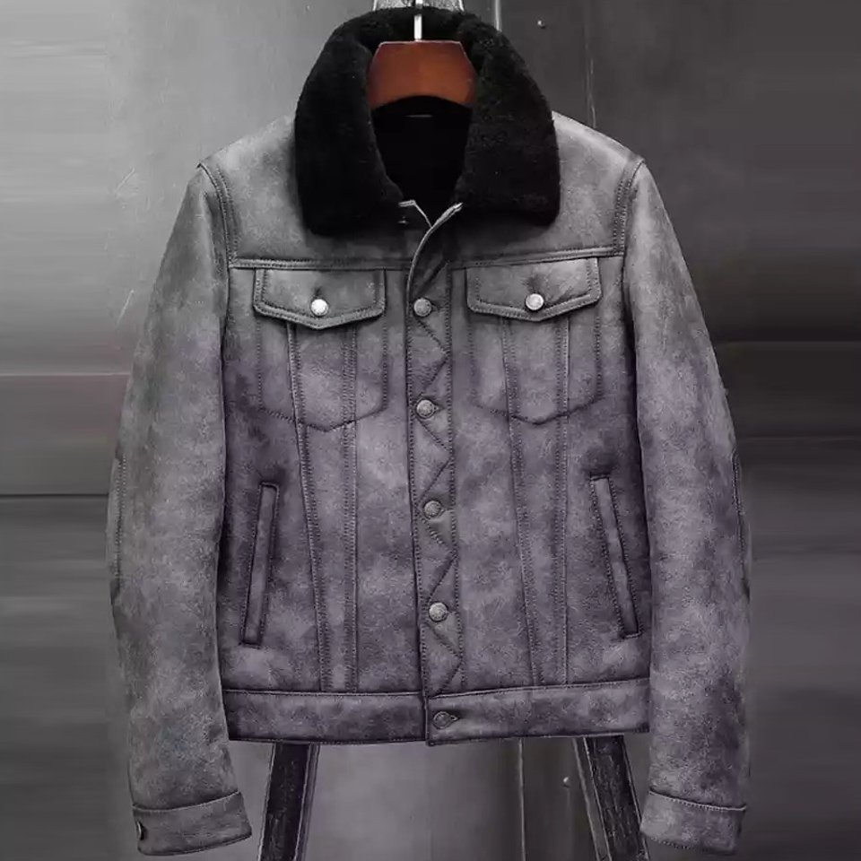 Mens Shearling Coat B3 Bomber Jacket Short Fur Coat Jacket