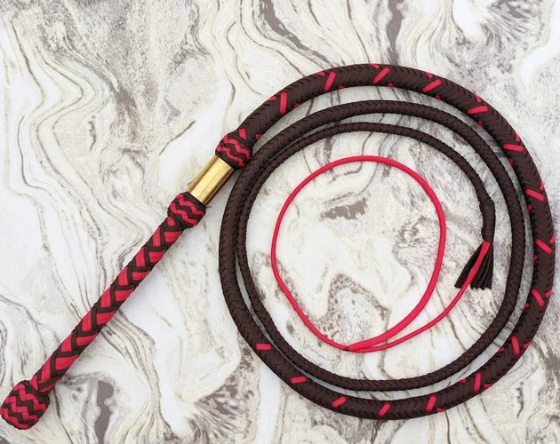 Affordable Cowhide Leather Bullwhip: Crafted from premium black and red color leather with a cowhide core, offering high quality at a budget-friendly price.