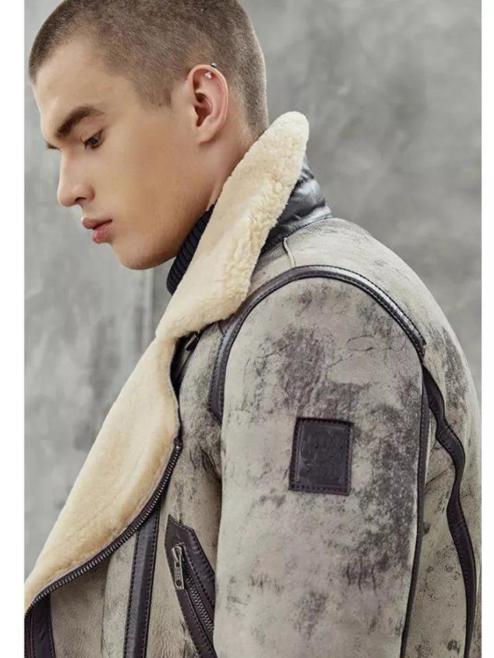 Men’s Aviator B3 Flight Fur Biker Bomber Premium Shearling Coat Jacket 2022