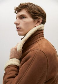 Men’s Aviator Tan Brown Leather Shearling Jacket