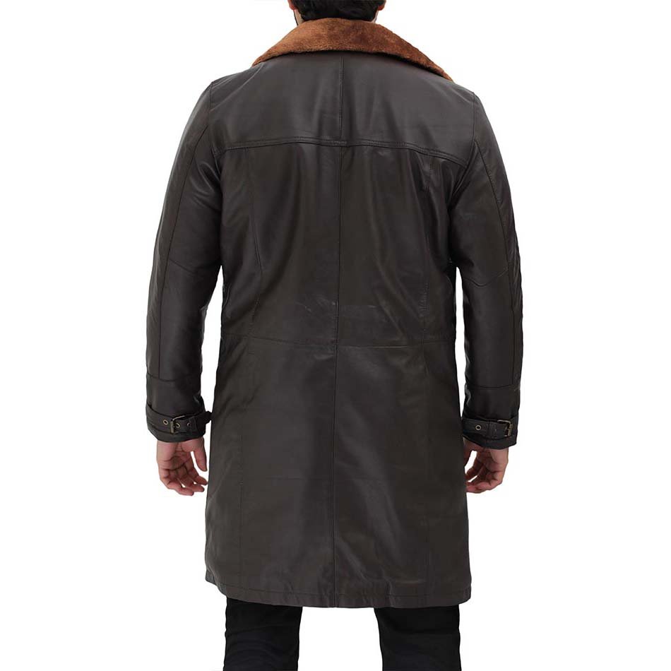 Mens Brown Shearling Reacher Style Sheepskin Fur Coat