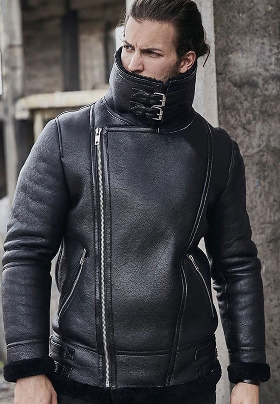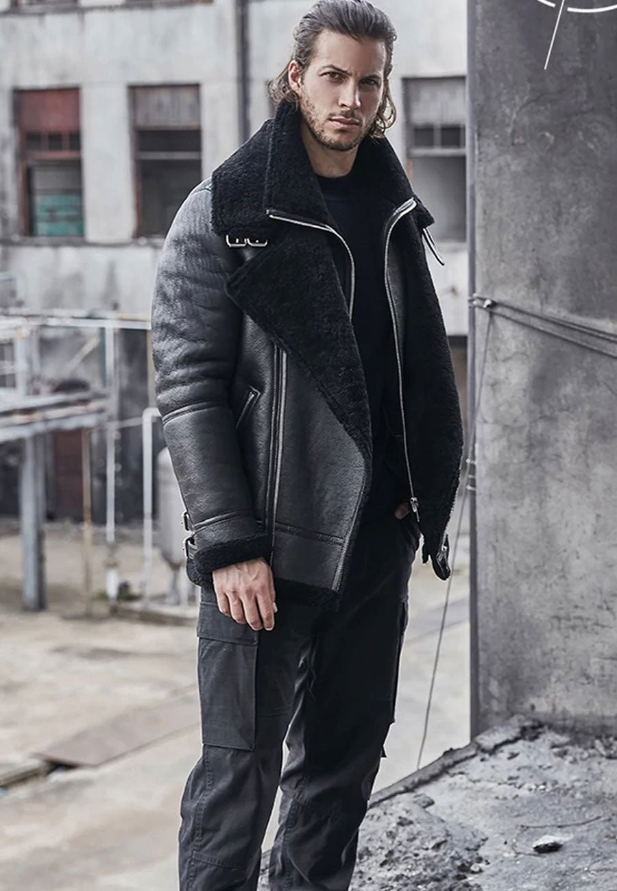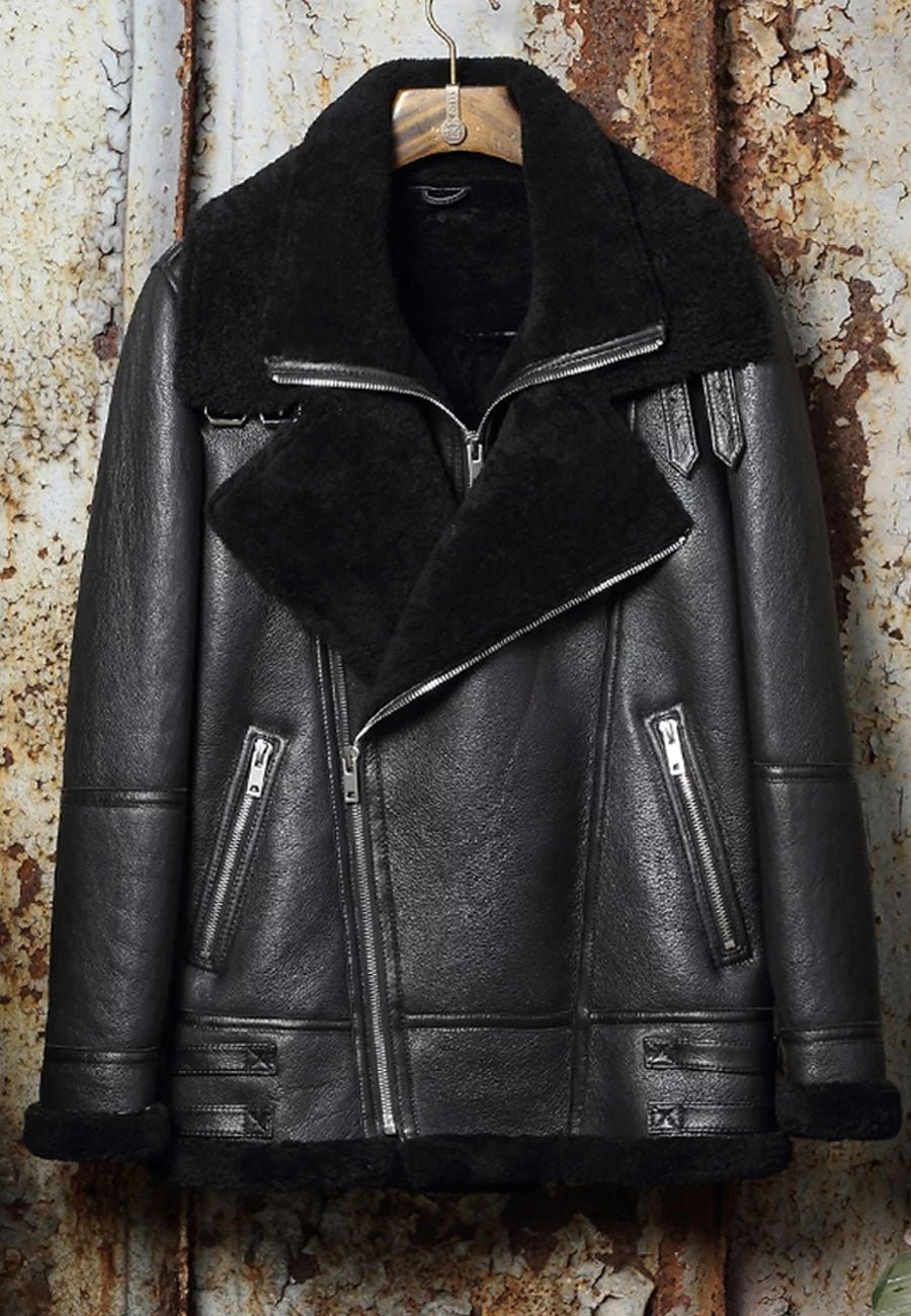 Men’s Aviator B3 Flight Fur Biker Bomber Premium Shearling Coat Jacket 2022