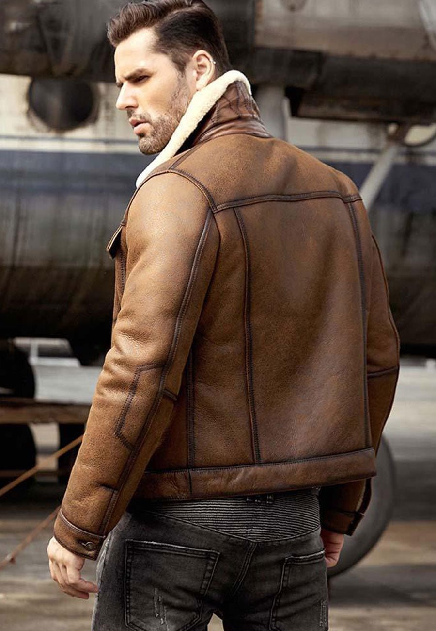 Men’s Aviator B3 Flight Fur Biker Bomber Premium Shearling Coat Jacket 2022