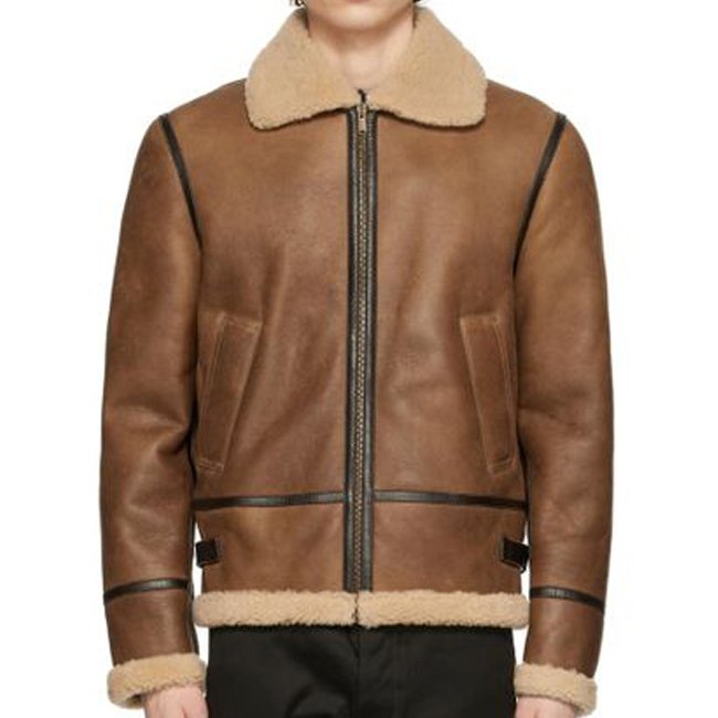 Mens Dark Brown B3 Shearling Leather Jacket