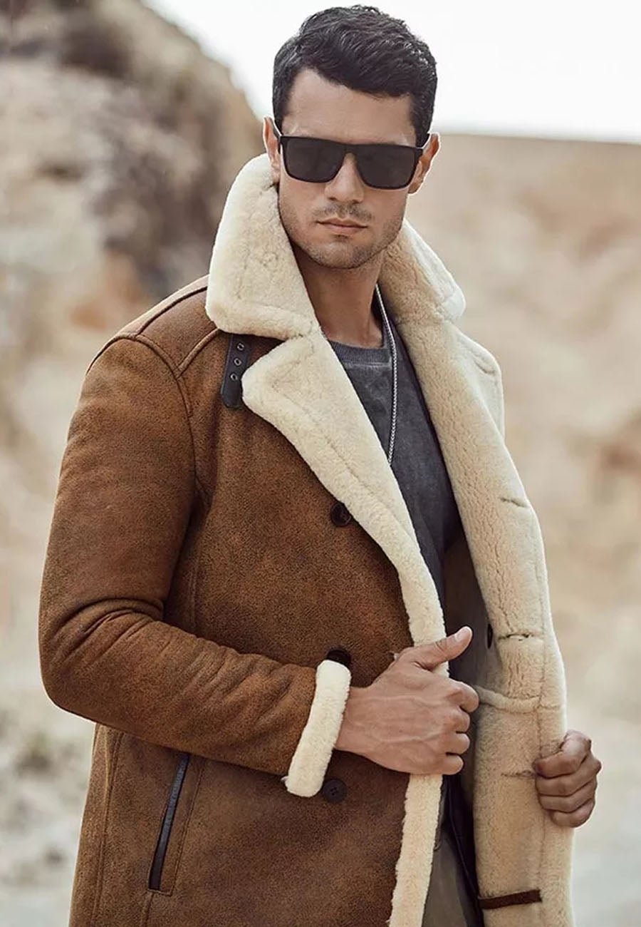 Be the first to review “Men’s Camel Brown Leather Shearling Long Coat”