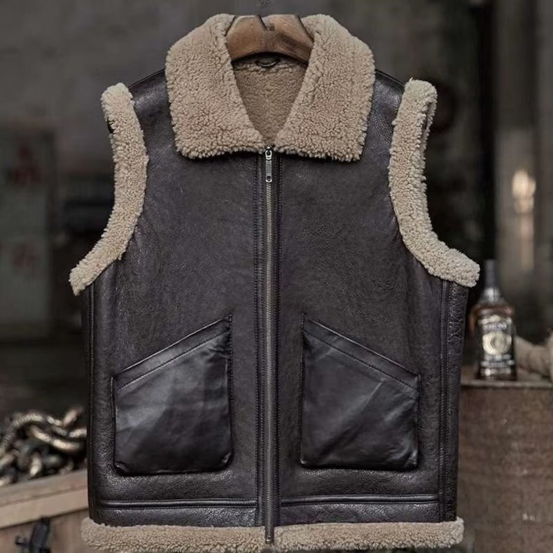 Mens Dark Brown RAF Flying Leather Shearling Biker Vest