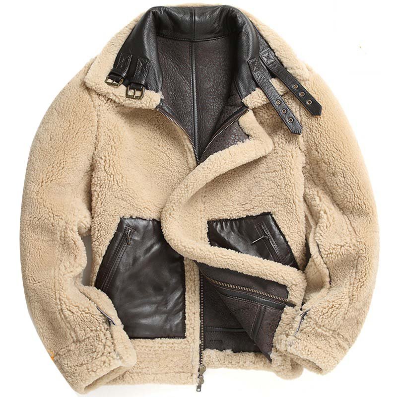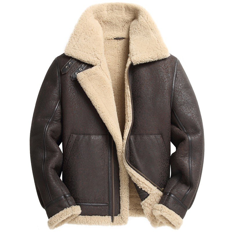Mens Shearling Coat B3 Bomber Jacket Short Fur Coat Jacket