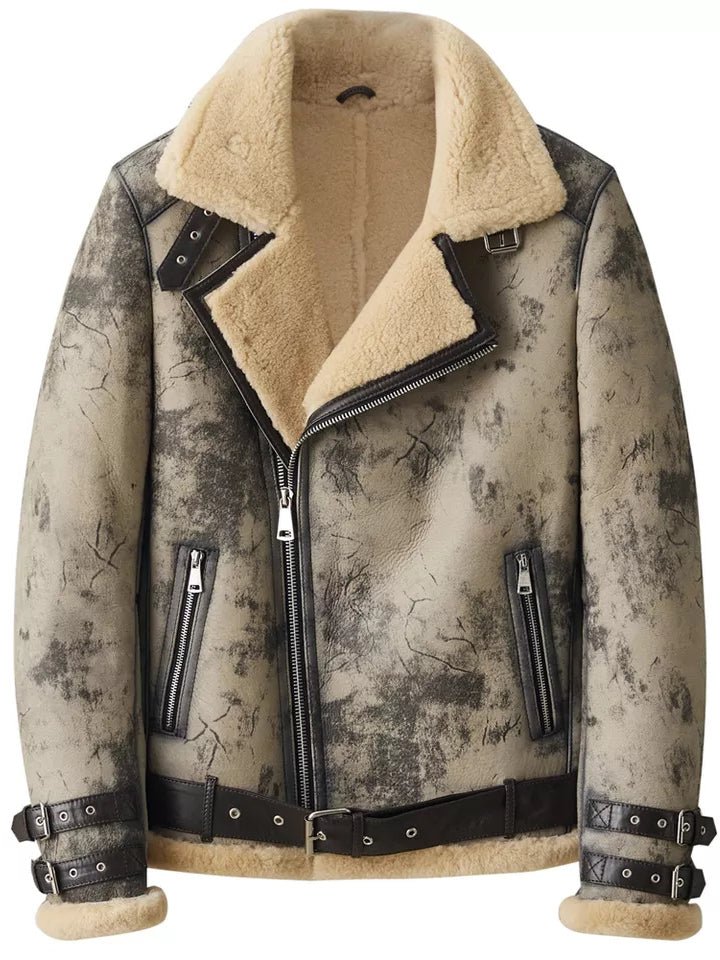 Men’s Aviator B3 Flight Fur Biker Bomber Premium Shearling Coat Jacket 2022