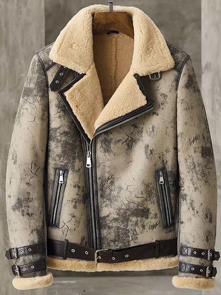 Men’s New B3 Flight Aviator Biker Bomber Premium Shearling Coat Jacket 2022