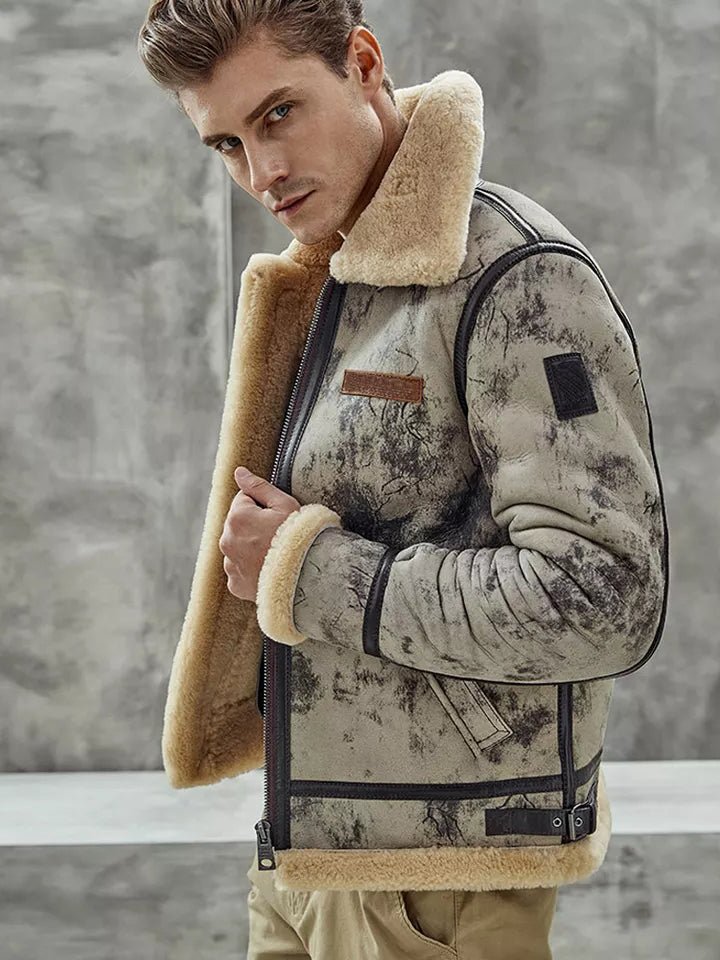Men’s Fur B3 Flight Aviator Bomber Premium Shearling Jacket 2022