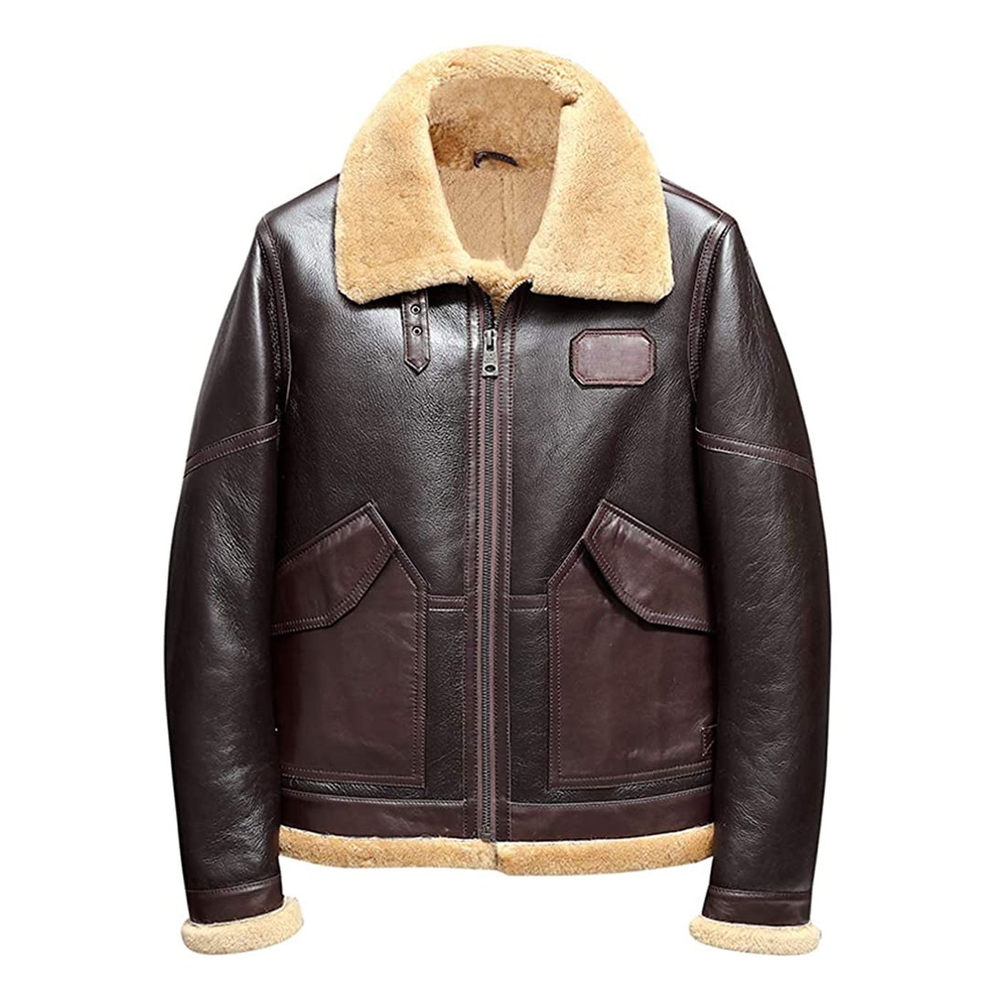 Mens Leather Jacket Fur Coat Airforce B3 Flight Jacket