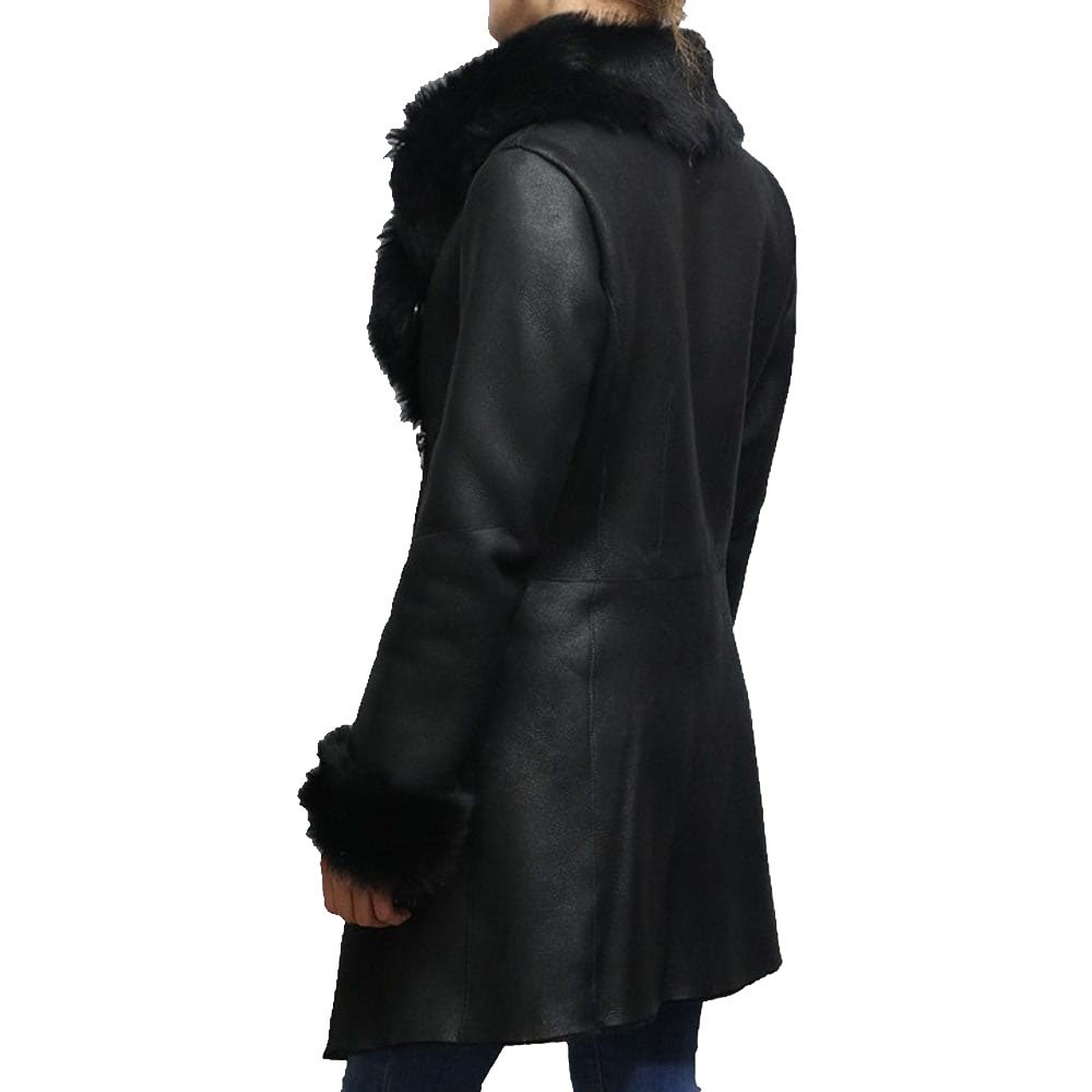 Black Leather Long Shearling Coat Womens